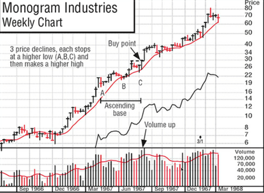 - “Search for companies that have developed important new products or services, or that have benefited from new management or materially improved industry conditions. Then buy their stocks when they are emerging from sound, correctly analyzed price consolidation patterns and are close to, or actually making, new price highs on increased volume.”